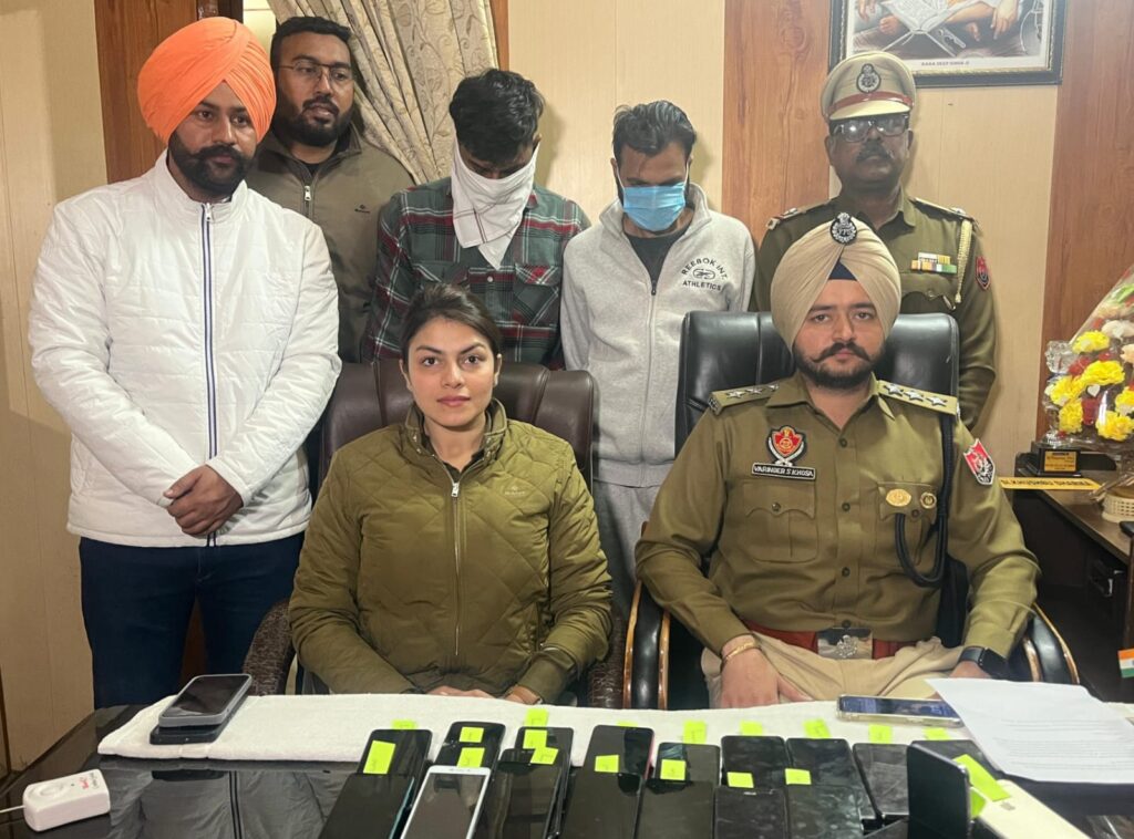 अमृतसर,13 दिसंबर (राजन):थाना रंजीत एवेन्यू की पुलिस ने तेज धार हथियारों के नोक पर लोगों से मोबाइल फोन लूटने वाले आरोपी को गिरफ्तार किया है। एसीपी नार्थ वरिंदर खोसा ने बताया कि गिरफ्तार आरोपी हरमनदीप सिंह निवासी एक्सकोर्ट एवेन्यू वेरका रंजीत एवेन्यू, सिविल लाइन, बाईपास क्षेत्र में राहगीरों से तेज धार हथियार आदि का प्रयोग करके लोगों से मोबाइल फोन लूट लेता था। पुलिस ने हरमन दीप सिंह को गिरफ्तार करके पूछताछ की। उन्होंने बताया कि हरमनदीप सिंह से लुटे हुए 21 मोबाइल फोन, एक एक्टिवा और तेज धार हथियार बरामद किया गया। हरमनदीप सिंह लोगों से मोबाइल लूटकर लिबर्टी मार्केट के दुकानदार संदीप धवन उर्फ गोला3500/-रु में बेच देता था। संदीप धवन मोबाइलों से तकनीकी संशोधन करके आगे ग्राहकों को बेच देता था। पुलिस ने लिबर्टी मार्केट के दुकानदार संदीप धवन को भी गिरफ्तार कर लिया है।