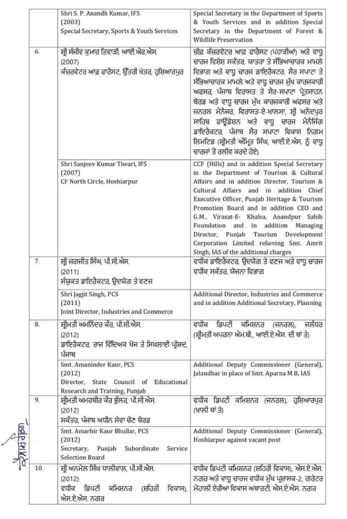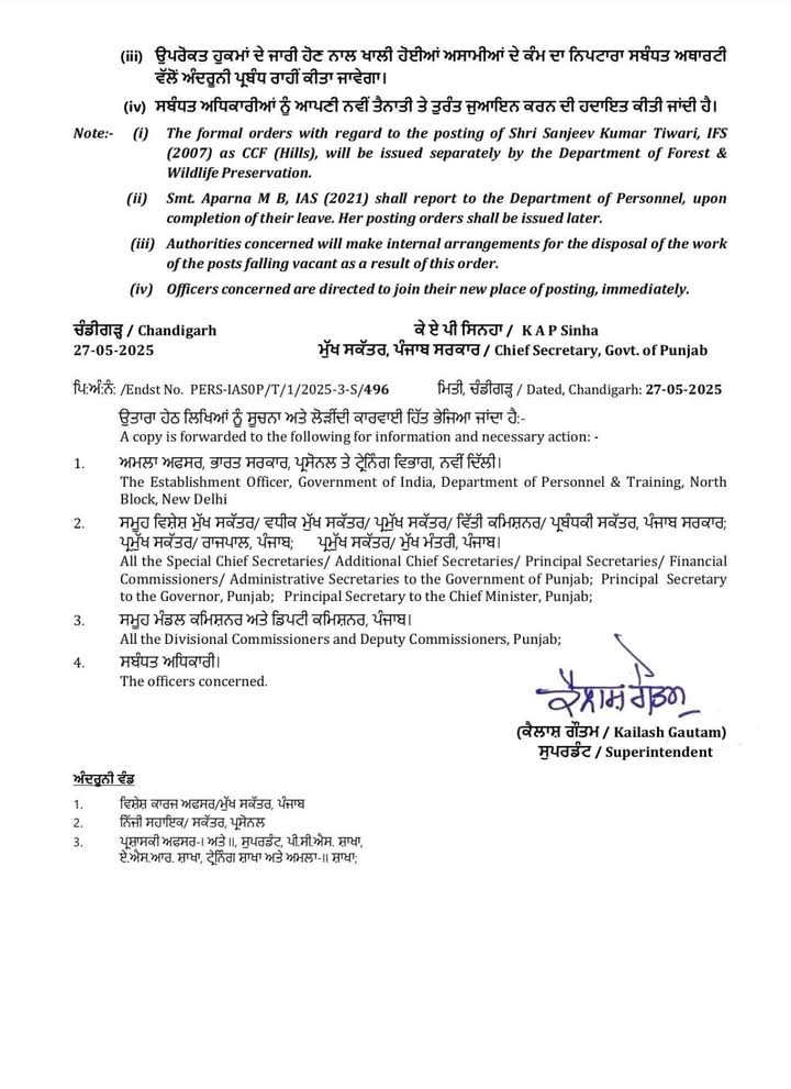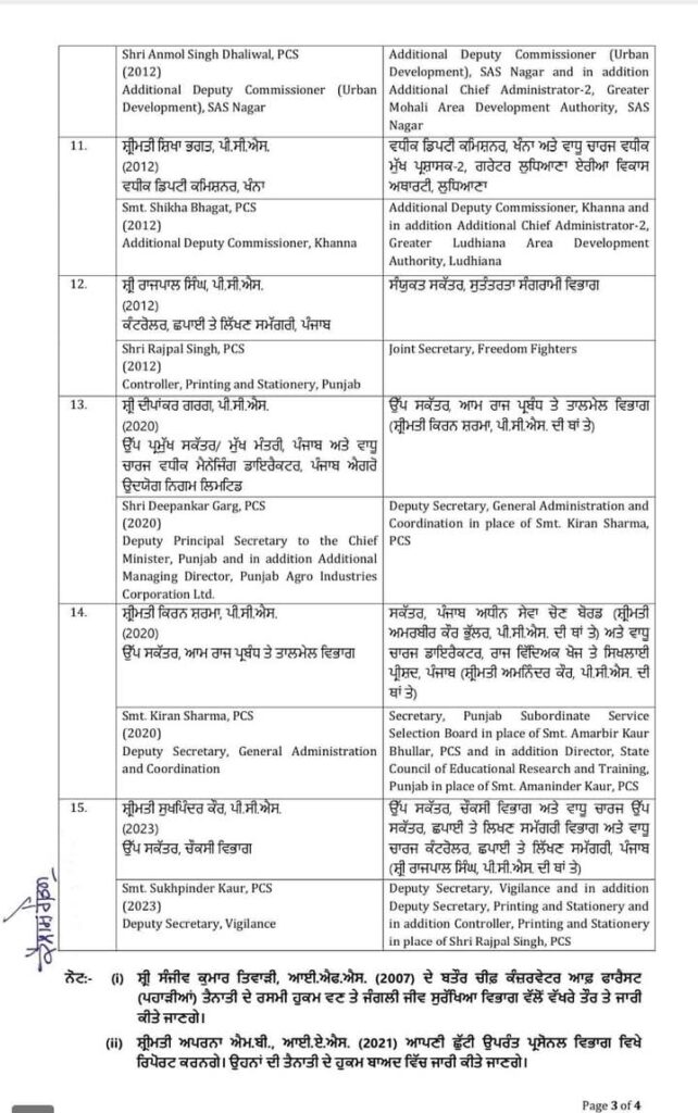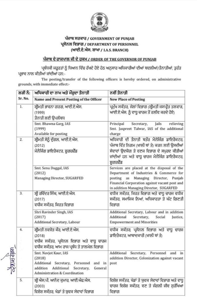 अमृतसर, 27 मई : पंजाब सरकार ने 15 आईएएस और पीसीएस अधिकारियों के तबादले किए हैं।