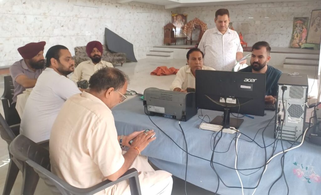 कैंप दौरान प्रॉपर्टी टैक्स एकत्रित करते निगम सुपरिंटेंडेंट राजकुमार और उनकी टीम ।