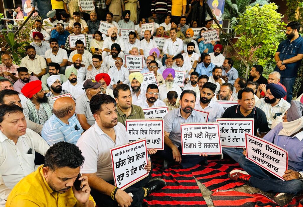 अमृतसर, 18 सितंबर (राजन): अमृतसर शहर की खराब सफाई व्यवस्था को लेकर आज कांग्रेसी पार्षदों और कांग्रेसी पदाधिकारी द्वारा नगर निगम मुख्य कार्यालय रंजीत एवेन्यू के बाहर रोष स्वरूप धरना दिया गया।