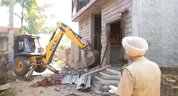 अमृतसर, 27 सितंबर(राजन):जिला प्रशासन अमृतसर और अमृतसर ग्रामीण पुलिस ने आज एक बड़ी कार्रवाई करते हुए हलका राजा सांसी के गाँव भागुपुर में नशा तस्कर मलूक सिंह पुत्र जोगिंदर सिंह का मकान गिरा दिया। पुलिस टीम का नेतृत्व जिला पुलिस प्रमुख मनिंदर सिंह की ओर से एसपी आदित्य वारियर ने किया। उन्होंने बताया कि मलूक सिंह और उसके बेटे सतबीर सिंह उर्फ सोनू और रणजीत सिंह लंबे समय से नशे के कारोबार में संलिप्त हैं। अब तक उनके खिलाफ एनडीपीएस एक्ट के तहत 24 मामले दर्ज किए जा चुके हैं।