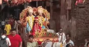 परिक्रमा मार्ग हेलिकॉप्टर से फूलों की वर्षा की गई