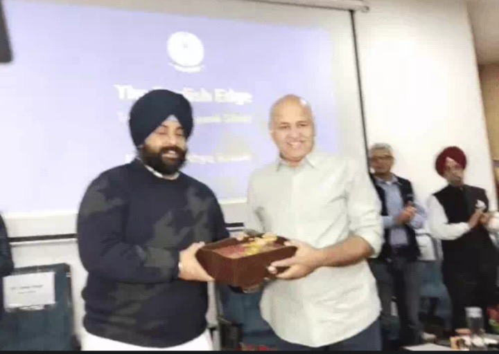मनीष सिसोदिया को सम्मानित करते हुए।