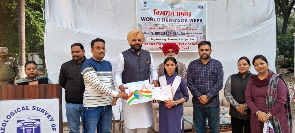 अमृतसर, 22 नवंबर(राजन): आर्कियोलॉजिकल सर्वे ऑफ इंडिया (एएसआई) की ओर से कंपनी बाग स्थित महाराजा रणजीत सिंह समर पैलेस परिसर में विश्व विरासत सप्ताह की शुरुआत उत्साहपूर्वक की गई। कार्यक्रम में बतौर मुख्य मेहमान पहुंचे सांसद गुरजीत सिंह औजला ने बच्चों को पंजाब की समृद्ध विरासत को समझने और उससे जुड़ने का विशेष आह्वान किया।