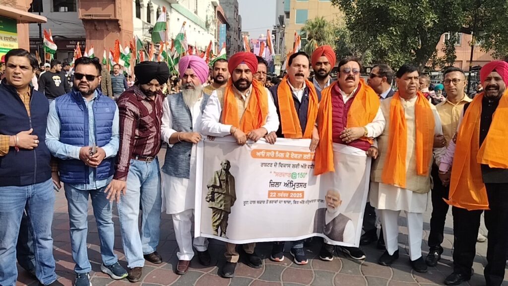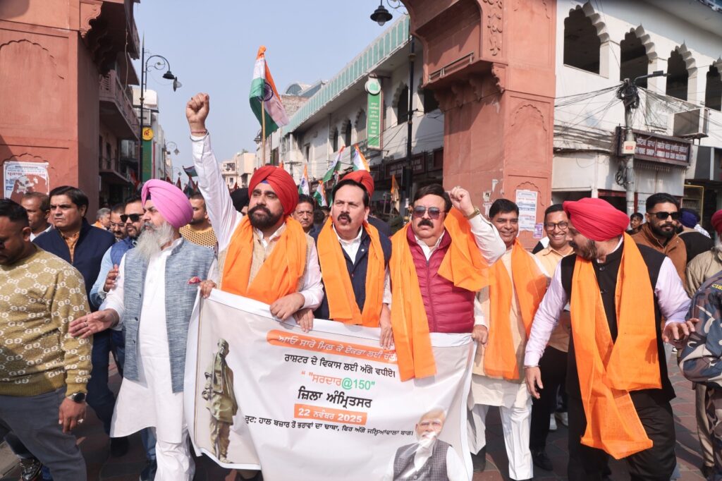 अमृतसर, 22 नवंबर (राजन):पूरा जीवन देश के लिए जीने वाले प्रसिद्ध स्वतंत्रता सेनानी तथा स्वतंत्र भारत के प्रथम गृहमंत्री लौहपुरुष सरदार वल्लभ भाई पटेल जी जयंती को समर्पित विशाल ‘एकता पद यात्रा’ का आयोजन भाजपा जिलाध्यक्ष हरविंदर सिंह संधू द्वारा किया गया, जिसमें पूर्व सांसद व पूर्व प्रदेश अध्यक्ष श्वेत मलिक, भाजपा पंजाब के सचिव व अमृतसर के एकता पद यात्रा कार्यक्रम के प्रभारी राकेश शर्मा व राकेश गिल विशेष रूप से उपस्थित हुए।