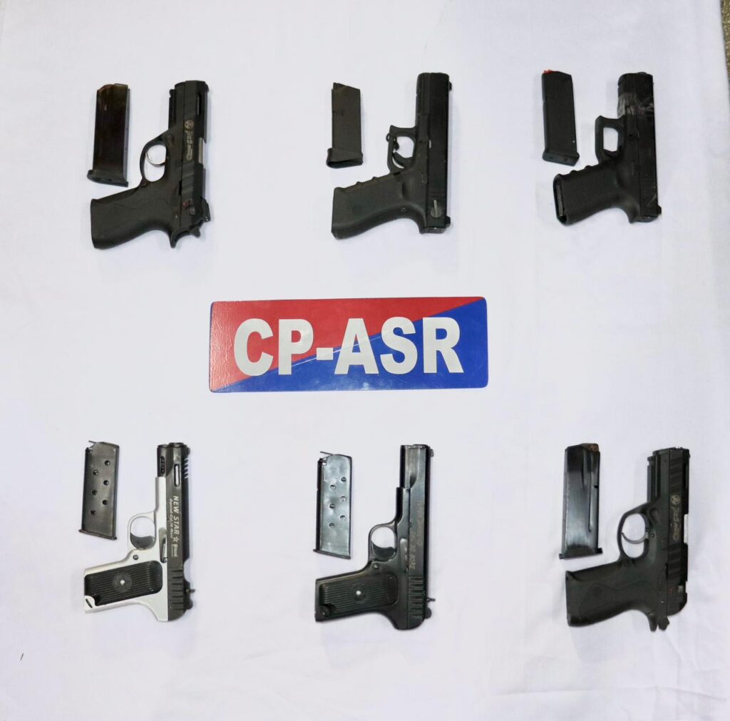 अमृतसर,8 दिसंबर (राजन): पंजाब पुलिस के डीजीपी गौरव यादव द्वारा दी गई जानकारी के अनुसार अमृतसर कमिश्नरेट पुलिस ने खुफिया जानकारी पर तेज़ी से कार्रवाई करते हुए, पाकिस्तान से चलाए जा रहे सीमा पार हथियार तस्करी मॉड्यूल का भंडाफोड़ किया। पुलिस ने एक नाबालिग सहित छह लोगों को गिरफ्तार किया, जिनके पास से छह आधुनिक पिस्तौल (पांच .30 बोर और एक PX5 9mm) बरामद की गईं।