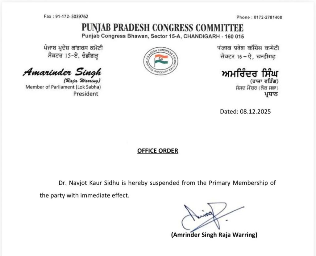 अमरिंदर राजा वडिंग, चरणजीत चन्नी, सुखजिंदर रंधावा और प्रताप सिंह बाजवा मुख्यमंत्री बनना चाहते हैं और उसी के चलते कांग्रेस को खत्म करने में लगे हुए हैं। आज देर शाम कांग्रेस प्रधान की तरफ से नवजोत कौर को प्राथमिक सदस्यता से निलंबित करने का फैसला सामने आ गया।