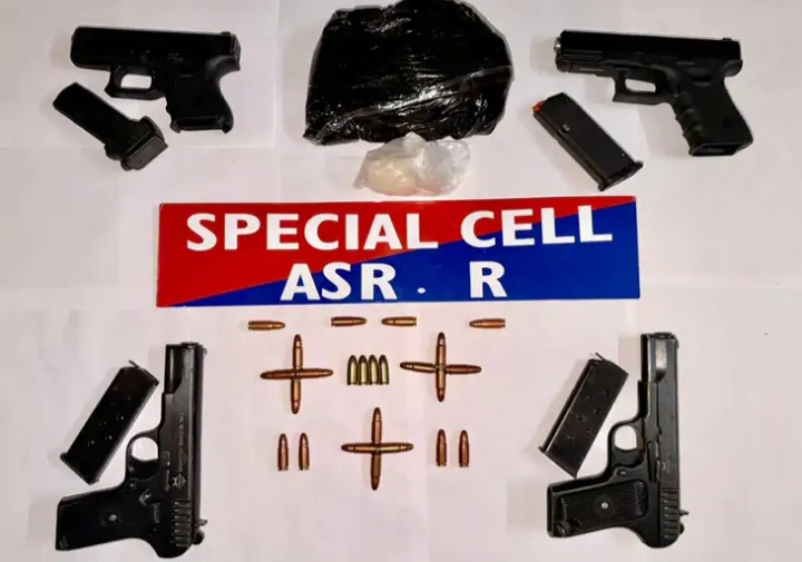 अमृतसर, 20 दिसंबर:अमृतसर ग्रामीण पुलिस की स्पेशल सेल टीम ने 4 पिस्टल, 24 जिंदा कारतूस, 1 किलो अफीम और 25 ग्राम हेरोइन सहित दो आरोपियों को गिरफ्तार किया है। पुलिस ने आरोपियों के कब्जे से दो मोबाइल फोन और एक मोटरसाइकिल भी बरामद की है। गिरफ्तार आरोपियों की पहचान सुखराज सिंह और जसकरण सिंह दोनों निवासी गांव जोंस मुहार, थाना अजनाला के रूप में हुई है।