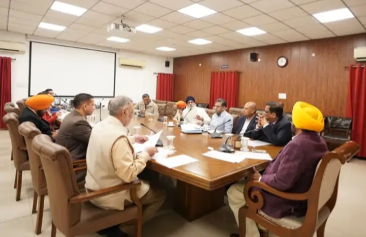 मुख्यमंत्री भगवंत मान स्वास्थ्य विभाग के अधिकारियों के साथ मीटिंग करते हुए।