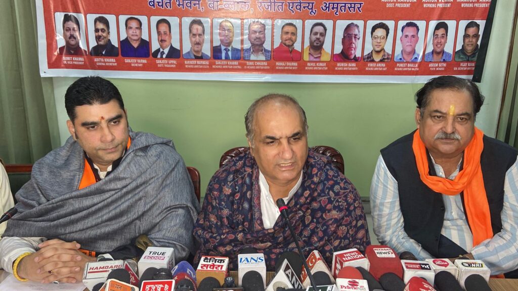 अमृतसर,28 दिसंबर(राजन): सनातन सेवा समिति पंजाब की प्रेस कॉन्फ़्रेन्स बचत भवन में हुई। जिसमें विशेष तौर पर मुख्य अतिथि के तौर पर  दीपक बाली  (एडवाइज़र, टूरिज़्म एंड कल्चरल डिपार्टमेंट पंजाब सरकार),  विजय शर्मा जी (प्रधान सनातन सेवा समिति पंजाब) और  प्रणव धवन (माझा इंचार्ज सनातन सेवा समिति पंजाब) उपस्थित रहे और सनातनी भाइयों को संगठन का हिस्सा बनाया गया।