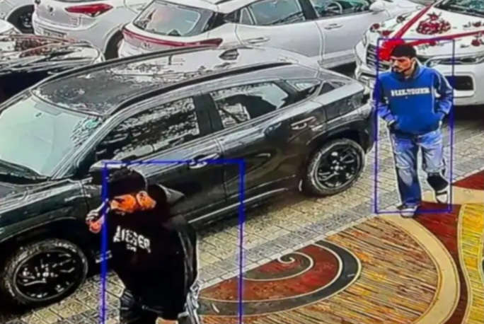 आया है। इसमें दोनों शूटर बिना मुंह ढके पिस्टल लेकर
