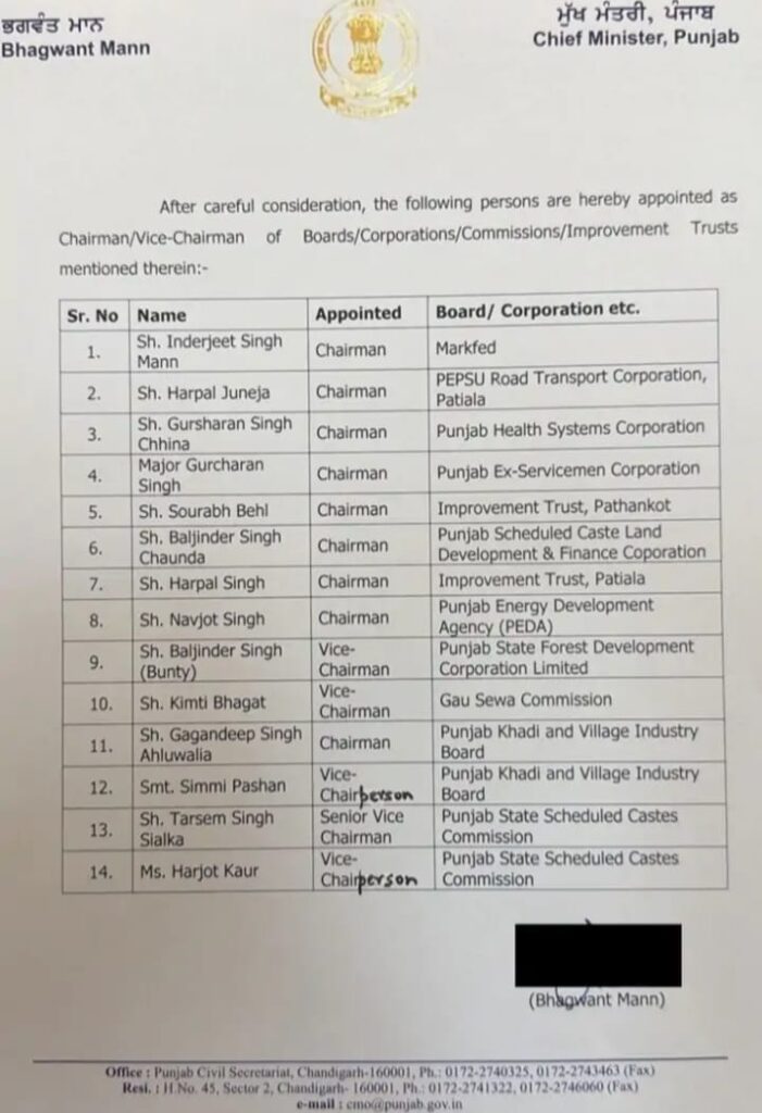 सीएम भगवंत मान ने नियुक्ति के आदेश जारी करते