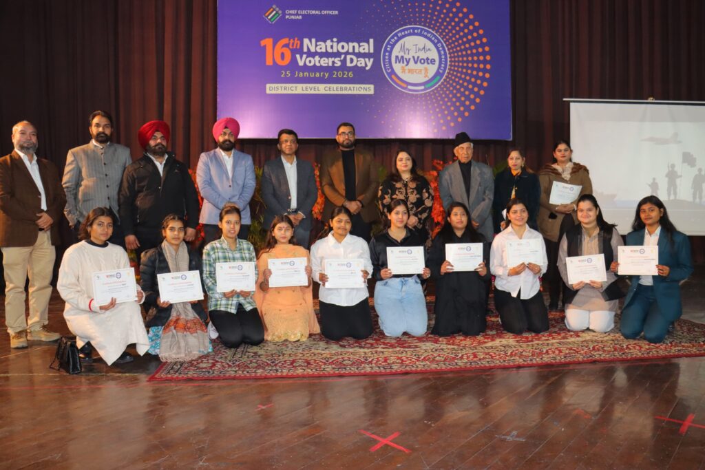 अमृतसर, 25 जनवरी(राजन) :हमारा देश दुनिया का सबसे बड़ा लोकतांत्रिक देश है क्योंकि इसके सभी योग्य नागरिक अपने वोट का इस्तेमाल करके लोगों की, लोगों के लिए और लोगों द्वारा सरकार चुनते हैं। बिना किसी लालच या भेदभाव के वोट डालना और उसका इस्तेमाल करना हमारा कानूनी हक है, वहीं वोट का सही इस्तेमाल हमारी सामाजिक ज़िम्मेदारी भी है। इसलिए हमें अपनी सामाजिक ज़िम्मेदारी से कभी नहीं भागना चाहिए। ये विचार जिला चुनाव अधिकारी -कम-डिप्टी कमिश्नर दलविंदरजीत सिंह ने 16वें नेशनल वोटर्स डे के मौके पर बीबीकेडीएवी कॉलेज में हुए जिला स्तरीय नेशनल वोटर्स डे समारोह को संबोधित करते हुए कहे। उन्होंने युवाओं से अपील करते हुए कहा कि हमें अपने कानूनी हक का ईमानदारी से इस्तेमाल करना चाहिए ताकि हमारे सपनों की सरकार बन सके।