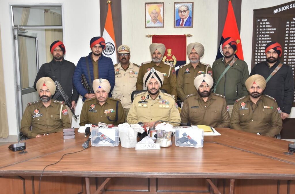 अमृतसर,27 जनवरी: पंजाब पुलिस के डीजीपी गौरव यादव द्वारा दी गई जानकारी के अनुसार अमृतसर कमिश्नरेट पुलिस ने एक बड़ी सफलता हासिल करते हुए सीमा पार नशीले पदार्थों और हथियारों की तस्करी करने वाले एक मॉड्यूल का भंडाफोड़ किया है, जिसमें 4 लोगों को गिरफ्तार किया गया है। पुलिस ने  1.5 किलो हेरोइन, 2 आधुनिक पिस्तौल (एक 9mm और एक .30 बोर), 34 जिंदा 9mm कारतूस और ₹1.98 लाख ड्रग्स मनी बरामद किया गया है।