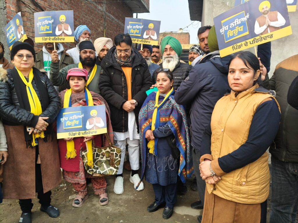 अमृतसर, 28 जनवरी(राजन):मुख्यमंत्री भगवंत सिंह मान के नेतृत्व में नशे के खिलाफ चल रही जंग के दूसरे चरण के तहत केंद्रीय विधानसभा क्षेत्र से विधायक डॉ अजय गुप्ता ने पिंड थांदे में नशा उन्मूलन मार्च निकाला और लोगों को जागरूक किया। विधायक डॉ अजय गुप्ता ने कहा कि मुख्यमंत्री पंजाब भगवंत सिंह मान की सरकार नशे के साथ-साथ गैंगस्टरों को भी खत्म करेगी। उन्होंने कहा कि हमारी सरकार ने तय किया है कि पंजाब में न तो नशा रहने दिया जाए और न ही गैंगस्टर रहने दिए जाएं।उन्होंने कहा कि पंजाब सरकार द्वारा चलाए जा रहे इन मार्चों को लोगों से भारी समर्थन मिला है। पिछले 10 से 15 दिनों से लगातार पूरे पंजाब में नशे के खिलाफ जंग यात्राएं निकाली जा रही हैं, जिससे नशे को काफी हद तक रोका जा सका है और इसे जड़ से खत्म किया जा सका है। सरकार ने गांव के चौकीदार बनने के लिए 98991-00002 नंबर जारी किया है, जिस पर लोग मिस्ड कॉल देकर खुद को रजिस्टर कर सकते हैं।
