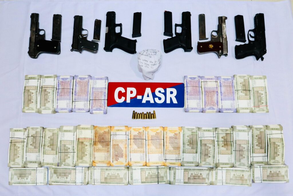 पुलिस आयुक्त (सी.पी.) अमृतसर गुरप्रीत सिंह भुल्लर ने कार्रवाई के संबंध में विवरण साझा करते हुए कहा कि सीमा पार तस्करी संबंधों की पुख्ता एवं गुप्त सूचना पर कार्रवाई करते हुए पुलिस टीमों ने सिमरनजीत उर्फ मन्नू, मोलकदीप सिंह, गुरप्रीत उर्फ गोपी, सुखराज उर्फ जोगा और साजन उर्फ गुरसाजन उर्फ लड्डा को एक कार सहित गिरफ्तार किया है और उनके कब्जे से दो .32 बोर पिस्तौल बरामद किए हैं। उन्होंने कहा कि आगे की पूछताछ के बाद हुई बरामदगी के दौरान चार अन्य पिस्तौल, 115 ग्राम हेरोइन और 11.90 लाख रुपये की ड्रग मनी जब्त की गई, जो संगठित अवैध हथियारों और नशीले पदार्थों की गतिविधियों में उनकी संलिप्तता की पुष्टि करती है।