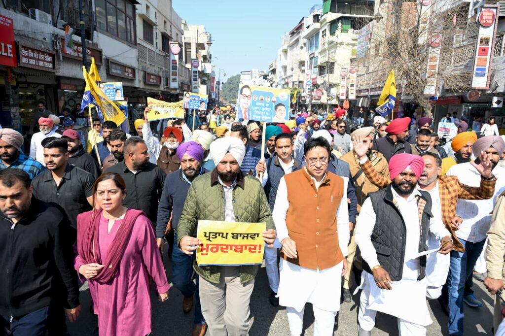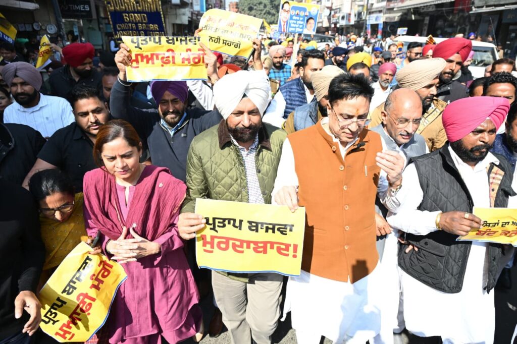 के खिलाफ प्रदर्शन किया और रोष मार्च निकाला। इसके बाद हाल बाजार में कांग्रेस दफ्तर के बाहर प्रताप सिंह बाजवा का पुतला जलाया।