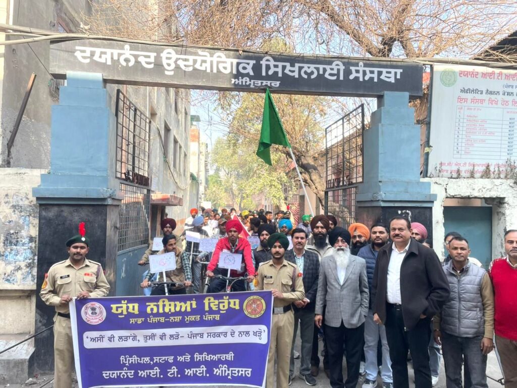अमृतसर,13 फरवरी:पंजाब सरकार की ओर से नशों के विरुद्ध चलाए जा रहे अभियान “युद्ध नशों के विरुद्ध” को उस समय और अधिक बल मिला, जब दयानंद आईटीआई, अमृतसर के प्रिंसिपल डॉ. संजीव शर्मा के नेतृत्व में स्टाफ तथा विद्यार्थियों ने एक जागरूकता साइकिल रैली और पैदल मार्च का आयोजन किया।
