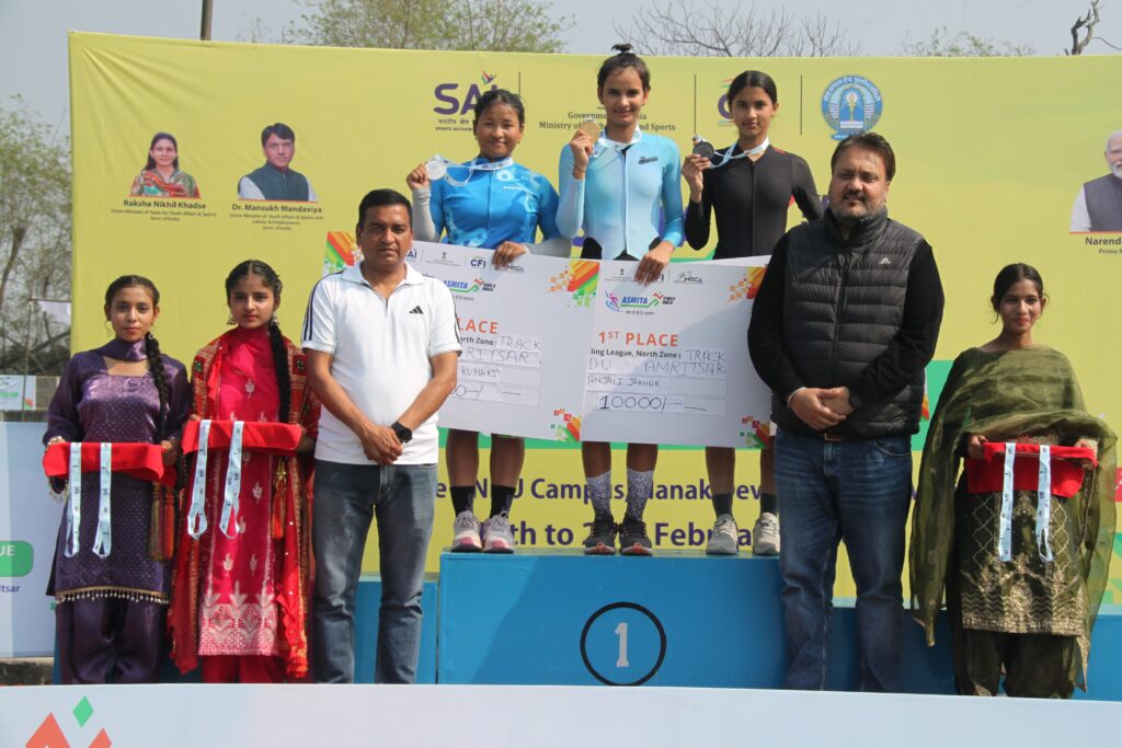 अमृतसर, 20 फरवरी:गुरु नानक देव विश्वविद्यालय के साइक्लिंग वेलोड्रोम में भारत सरकार की खेलो इंडिया योजना के तहत दो दिवसीय अस्मिता वीमेन साइक्लिंग लीग नॉर्थ ज़ोन ट्रैक साइक्लिंग चैंपियनशिप सफलतापूर्वक सम्पन्न हो गई।