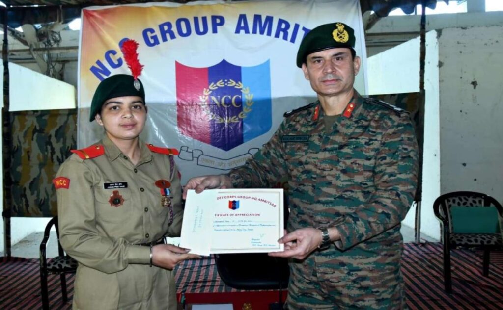 अमृतसर 12 अप्रैल:एनसीसी ग्रुप अमृतसर ने साल 2025 के दौरान ग्रुप, डायरेक्टरेट और नेशनल लेवल की अलग-अलग मशहूर एनसीसी एक्टिविटीज़ में शानदार प्रदर्शन करने वाले कैडेट्स को सम्मानित करने के लिए एक खास सम्मान समारोह आयोजित किया। इस इवेंट में ग्रुप कमांडर ब्रिगेडियर कुलबीर सिंह चीफ गेस्ट के तौर पर शामिल हुए, जिनकी मौजूदगी ने सभी कैडेट्स और स्टाफ को प्रेरित किया।